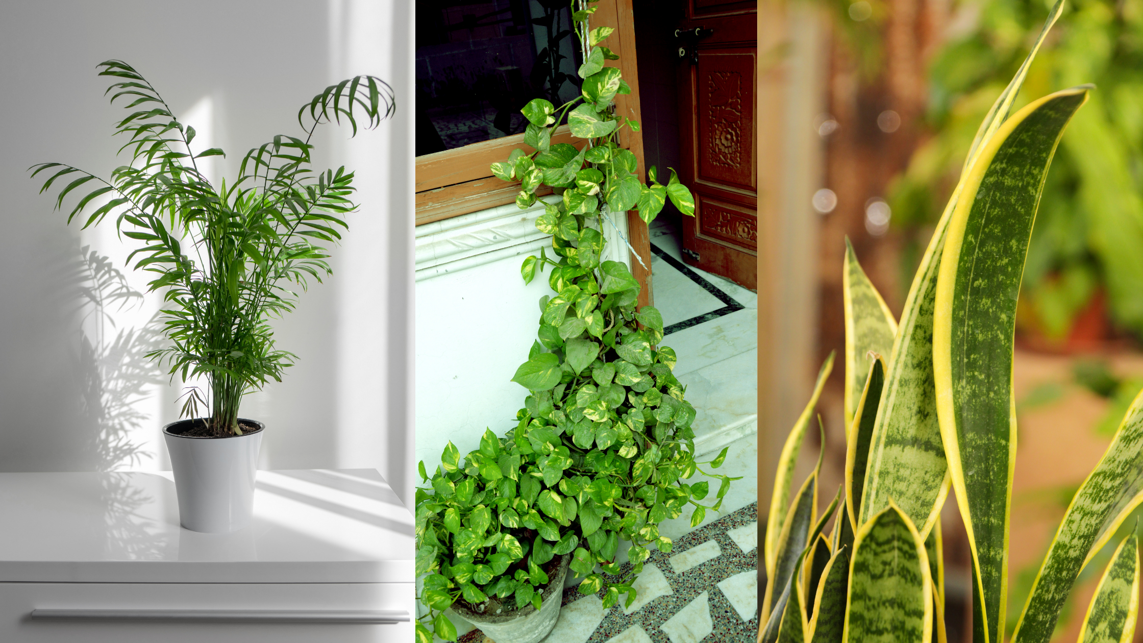 También hay plantas de interior que refrescan y purifican el aire. La palmera areca humidifica el ambiente, además de purificar el aire. La planta del dinero colgante refresca el ambiente y no necesita grandes cuidados, lo mismo que la sanseviera, otra planta muy resistente. Una planta interesante es el aloe vera que durante la noche libera oxígeno y absorbe anhídrido carbónico, se traduce en un aire más puro y mejor sueño. Al colocar plantas en las esquinas de las casas se crea un ambiente primaveral y fresco, con un aire más puro y más saludable.